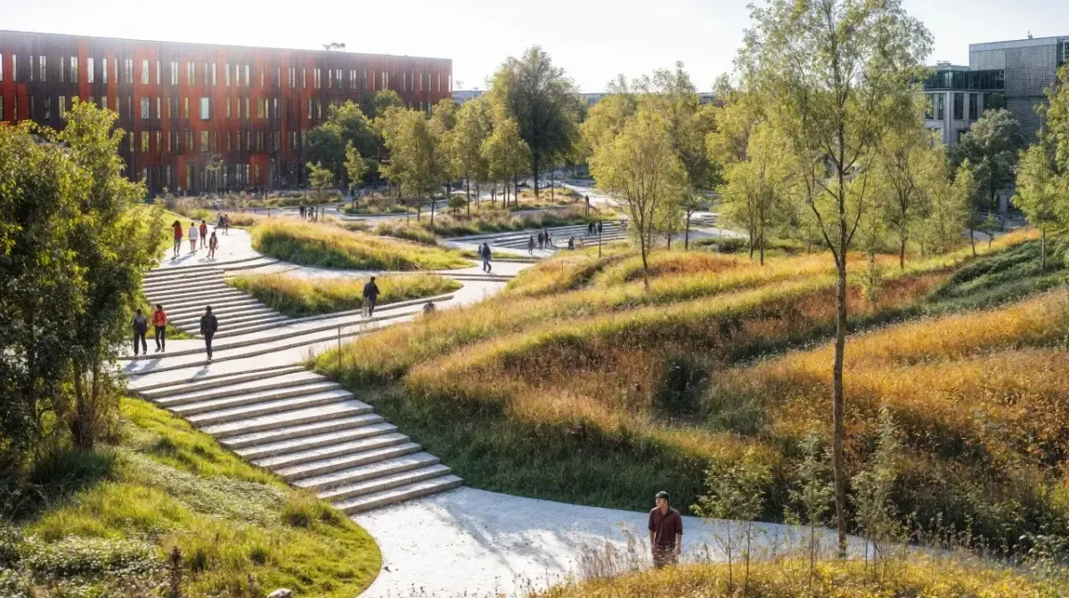 Urban A&O’s approach to smart cities and campuses challenges the notion that technology alone can solve urban problems. Instead, we focus on effective urban design—creating walkable, dense, and socially diverse eco-districts supported by clean energy and efficient public transportation. Our buildings are prefabricated, energy-efficient, and decarbonized, promoting low-tech, sustainable solutions that work harmoniously with nature. By integrating renewable energy and rewilding urban landscapes, we create cities and campuses that are socially, environmentally, and financially sustainable for the long term.